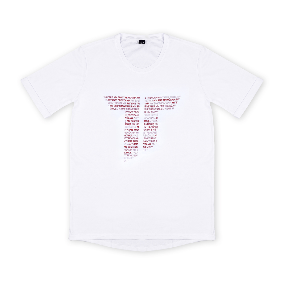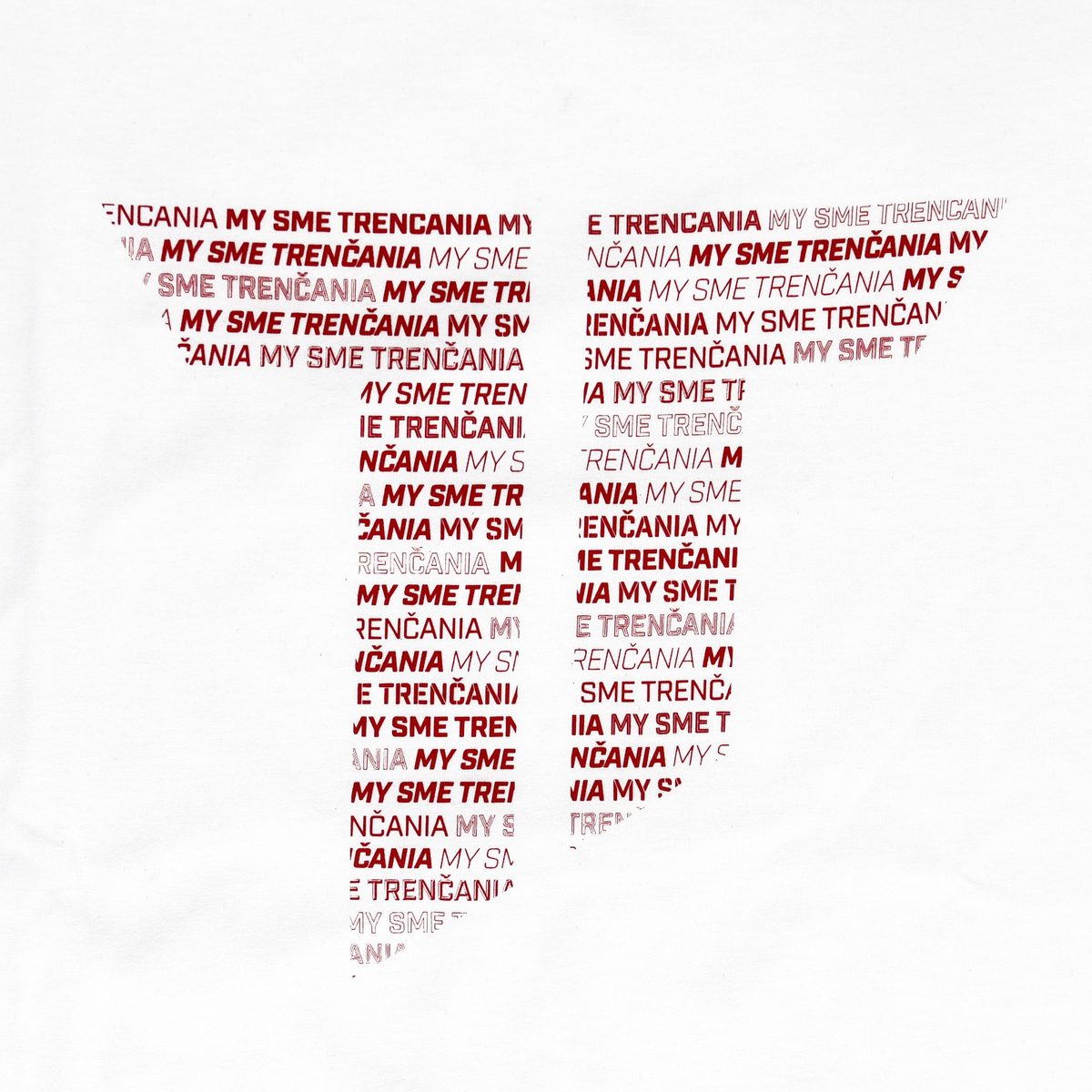 Women's white cotton T-shirt AS Trenčín with the club logo in the design We Are Trenčania was made in our region. It is white with an oversize cut, it has short bent sleeves.