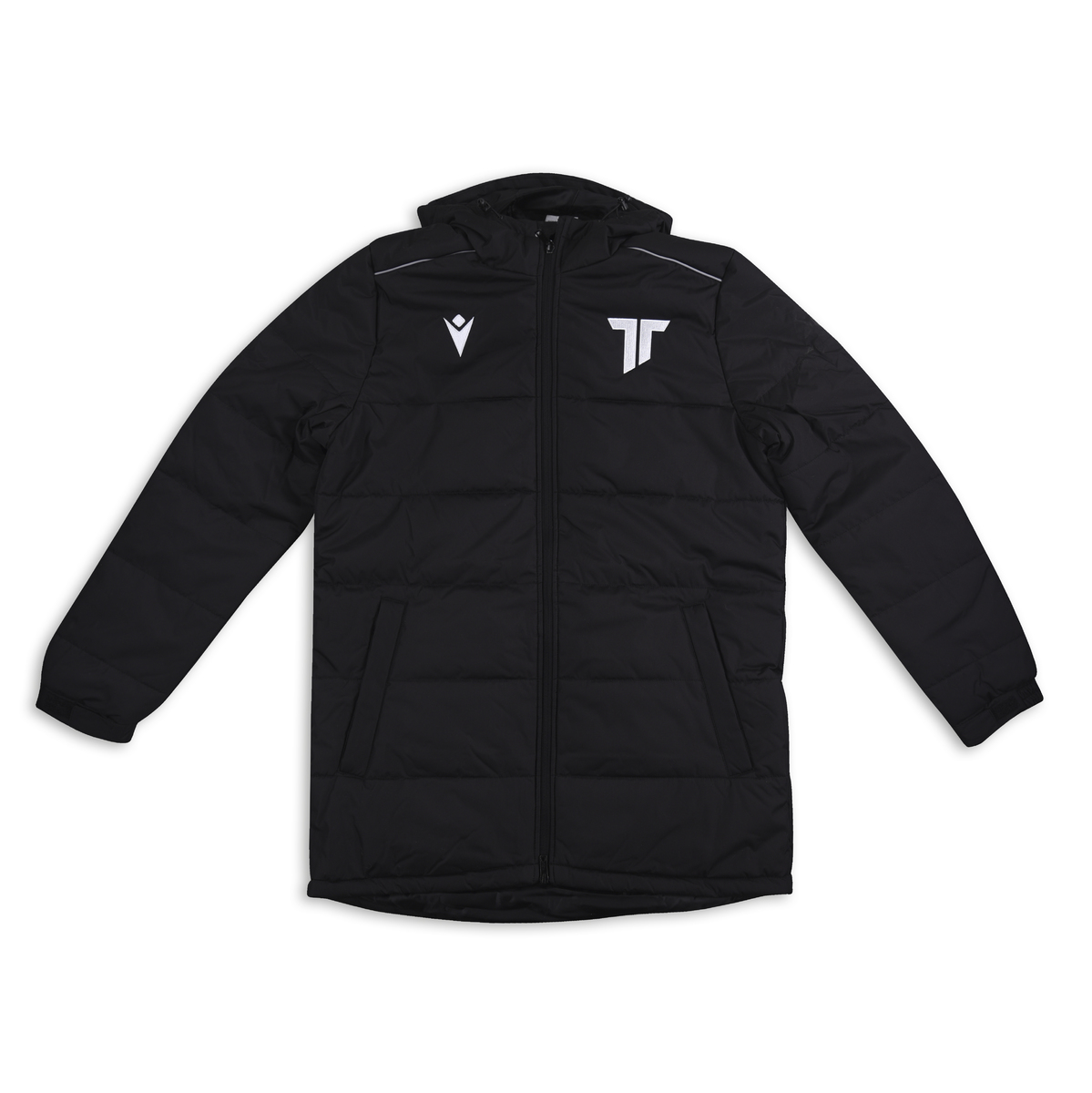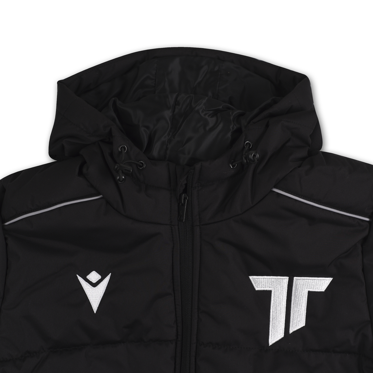 The Macron winter jacket with embroidered AS Trenčín club logo is an ideal choice for cold weather. The jacket with a hood is pleasantly warm thanks to the inner fleece lining. The sleeves are equipped with an elastic cuff with Velcro.