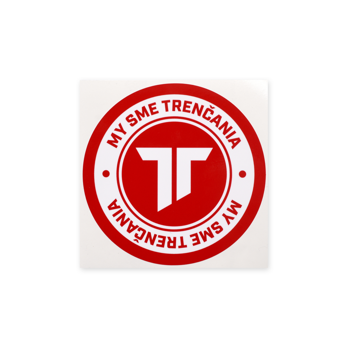 Samolepka s logom a nápisom My sme Trenčania na auto s priemerom 13 cm a UV filtrom.