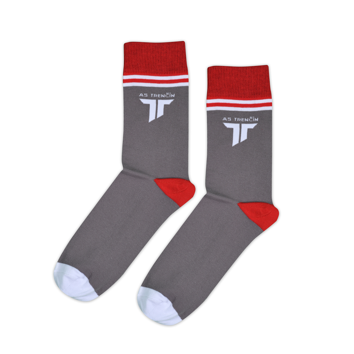 Bavlnené ponožky AS Trenčín v šedočervenej kombinácii.