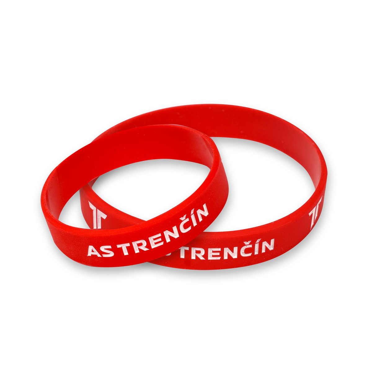 Červený silikónový náramok s logom a nápisom AS Trenčín je pohodlný, pružný a vhodný pre deti aj dospelých. Vodeodolný a ideálny na šport aj bežné nosenie.